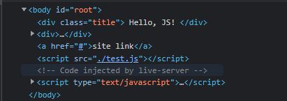 위와 같이 코드를 작성한 후 Visual Studio Code 의 경우 Open Live Server 를 이용해 index.html 에 접속해보면 개발자 콘솔에서 index.html 문서의 body 태그 내용이 출력되어 있는 것을 확인할 수 있다.