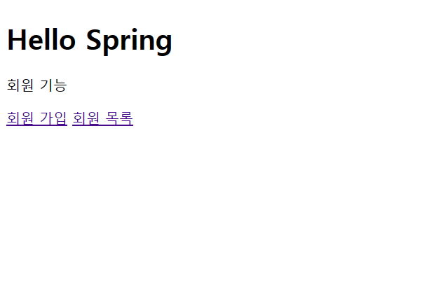 예제 홈 화면을 구성했으니 이제 화면에서 보이는 대로 회원 가입, 회원 목록 링크가 기능을 정상적으로 잘 수행하게끔 구현해보자.