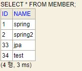 회원 가입 기능 또한 정상적으로 잘 수행되며, h2 console 에서 member 테이블을 확인해보면 데이터 삽입이 정상적으로 잘 되어 있는 것을 확인해 볼 수 있다.