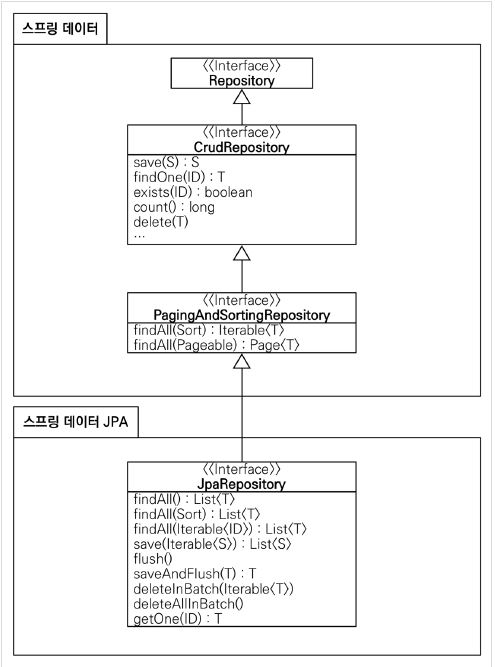그리고 반복 개발해온 기본 CRUD 기능도 스프링 데이터 JPA 가 모두 제공한다.