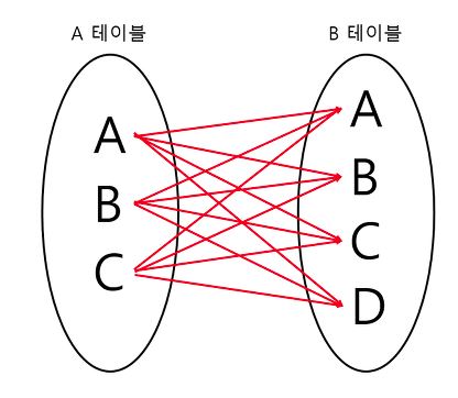 A가 3개, B가 4개이면 총 3*4 = 12 개의 데이터가 검색된다.