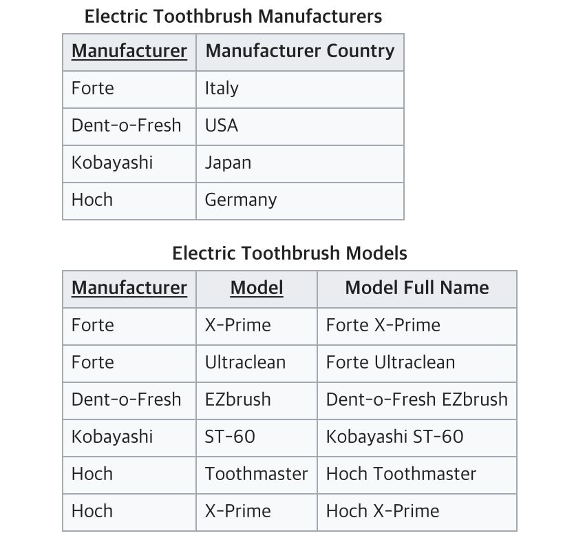 Electric Toothbrush Models 테이블에서는 참조해온 외래 키인 Manufacturer 와 Model 속성을 합쳐 (Manufacturer, Model) 로 기본키를 구성하였다.