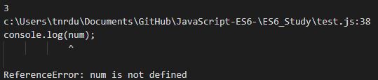 위와 같이 작성한 코드에서 num 변수는 전역 변수처럼 취급되어, if 문 밖으로 나왔음에도 불구하고 유효하게 사용되어 진다.