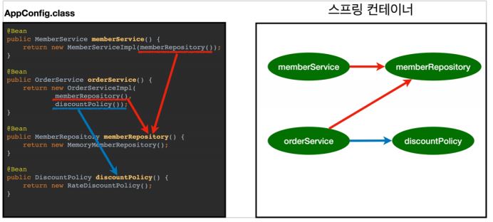 여기서는 이해를 돕기 위해 개념적으로 나누어 설명했다. 자세한 내용은 의존관계 자동 주입에서 다시 설명한다.
