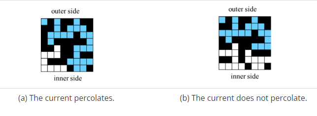 김 교수가 개발한 섬유물질을 나타내는 정보가 2차원 격자 형태로 주어질 때, 바깥쪽에서 흘려 준 전류가 안 쪽까지 침투될 수 있는지 아닌지를 판단하는 프로그램을 작성하시오.