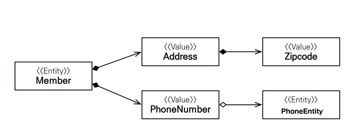 즉, 임베디드 타입이 Entity 값을 가질 수 있다는 것이다.(Entity 자체의 외래 키 값만 가지고 있으면 되기 때문)