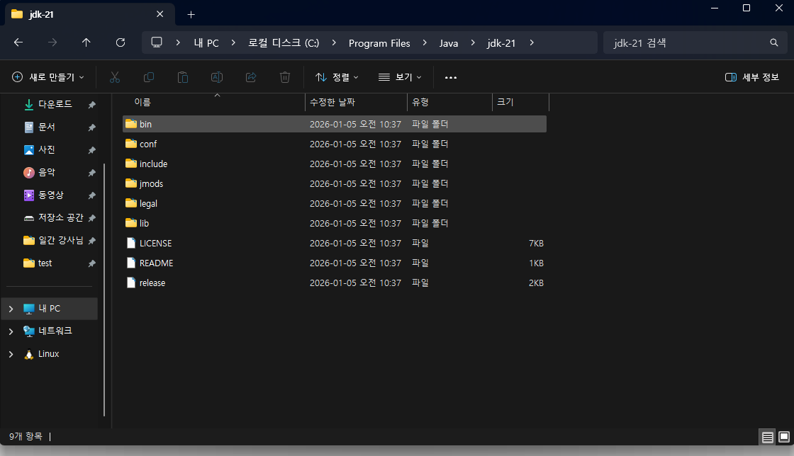 그 이후 설치된 자바 JDK 폴더 구성에서 내가 몰랐던 사실들이 존재했다.