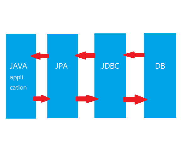 그러나 JPA 를 사용하면 JPA 측에서 JDBC API 를 호출하여 필요한 SQL 문을 따로 데이터베이스 측에 생성하여 전달해주므로 개발자는 SQL 작업에서 해방되어 좀 더 객체 지향 적인 코딩에 집중할 수 있게 된다.