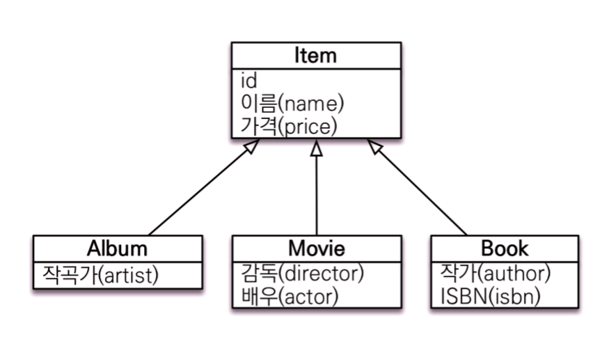 예시 : 부모인 Item 과 자식 Book 이 있다.