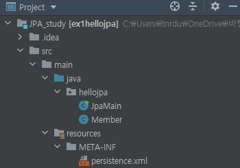 이후 Spring project 에서 resource 폴더 아래에 META-INF 디렉토리를 만든 후, 해당 디렉토리에 persistence.xml 파일을 생성한다.