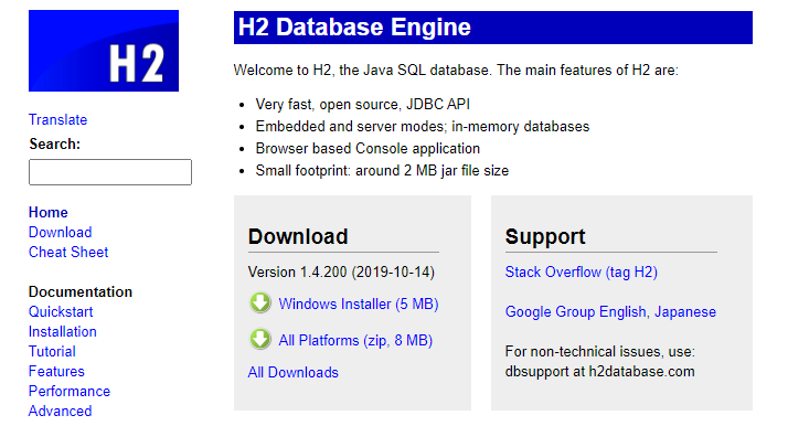 위의 페이지에서 본인 컴퓨터의 운영체제가 Windows 일 경우 Windows Installer 를, MAC 일 경우 All Platform 을 클릭하여 H2 데이터베이스를 설치해준다.